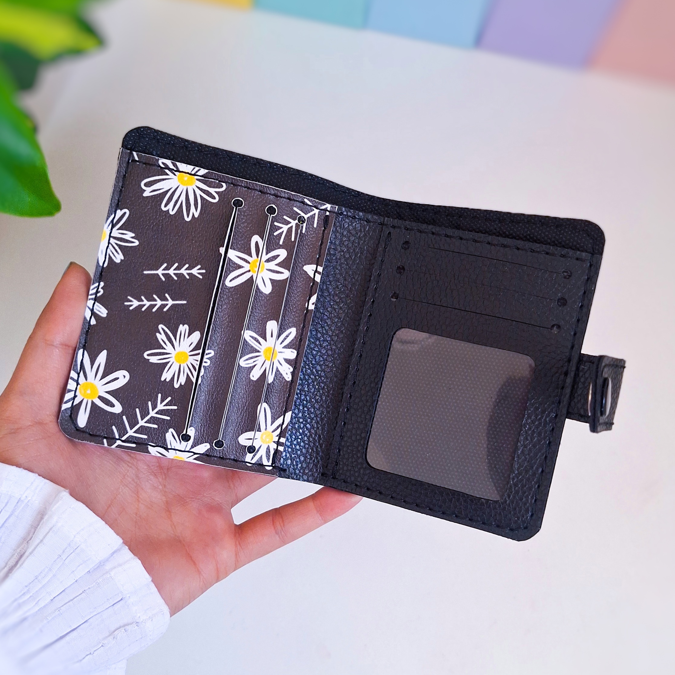 کیف پول جیبی طرح بابونه مشکی